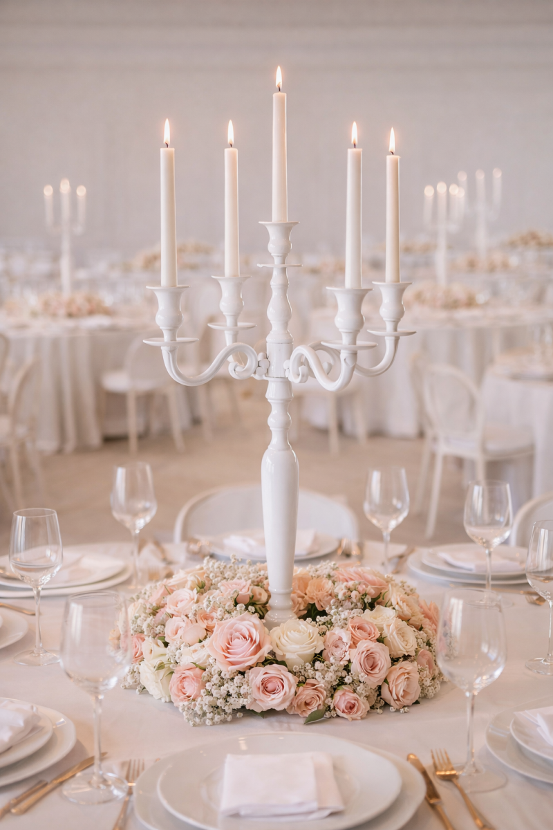 En métal blanc, l'élément indispensable pour obtenir une table romantique et élégante.